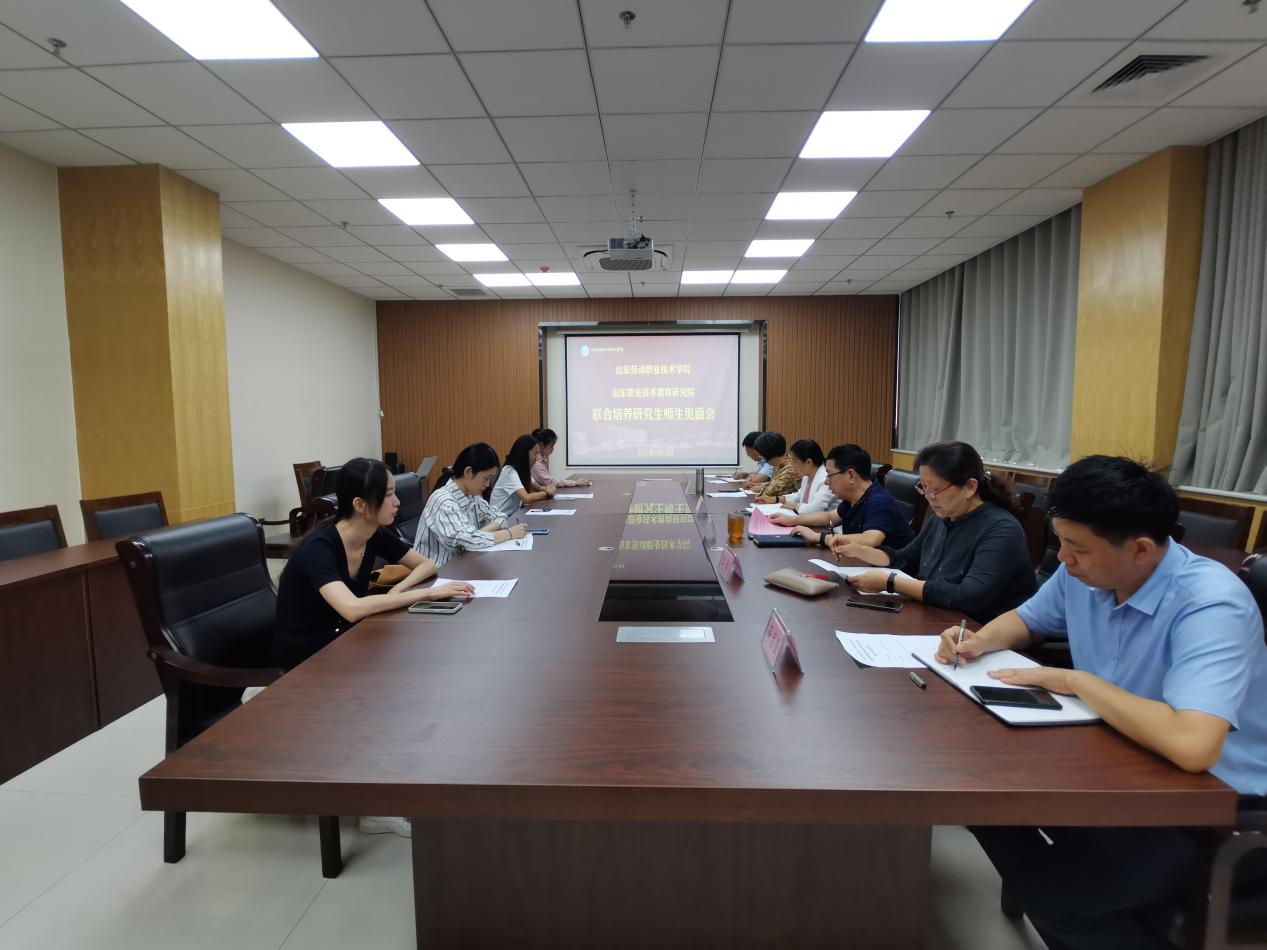 2022年9月15日下午,山东劳动职业技术学院、山东职业技术教育研究院联合培养职业技术教育学硕士研究生师生见面会在图书综合楼221会议室举行。学院党委委员、宣传部部长张丽芳,科研规划处处长王芳,质量考核办公室主任王华莲,电气及自动化系主任薛彦登,教务处副处长张良智,教务处谢晓雪,以及山东师范大学四位硕士研究生参加会议,会议由教务处处长赵烽主持。